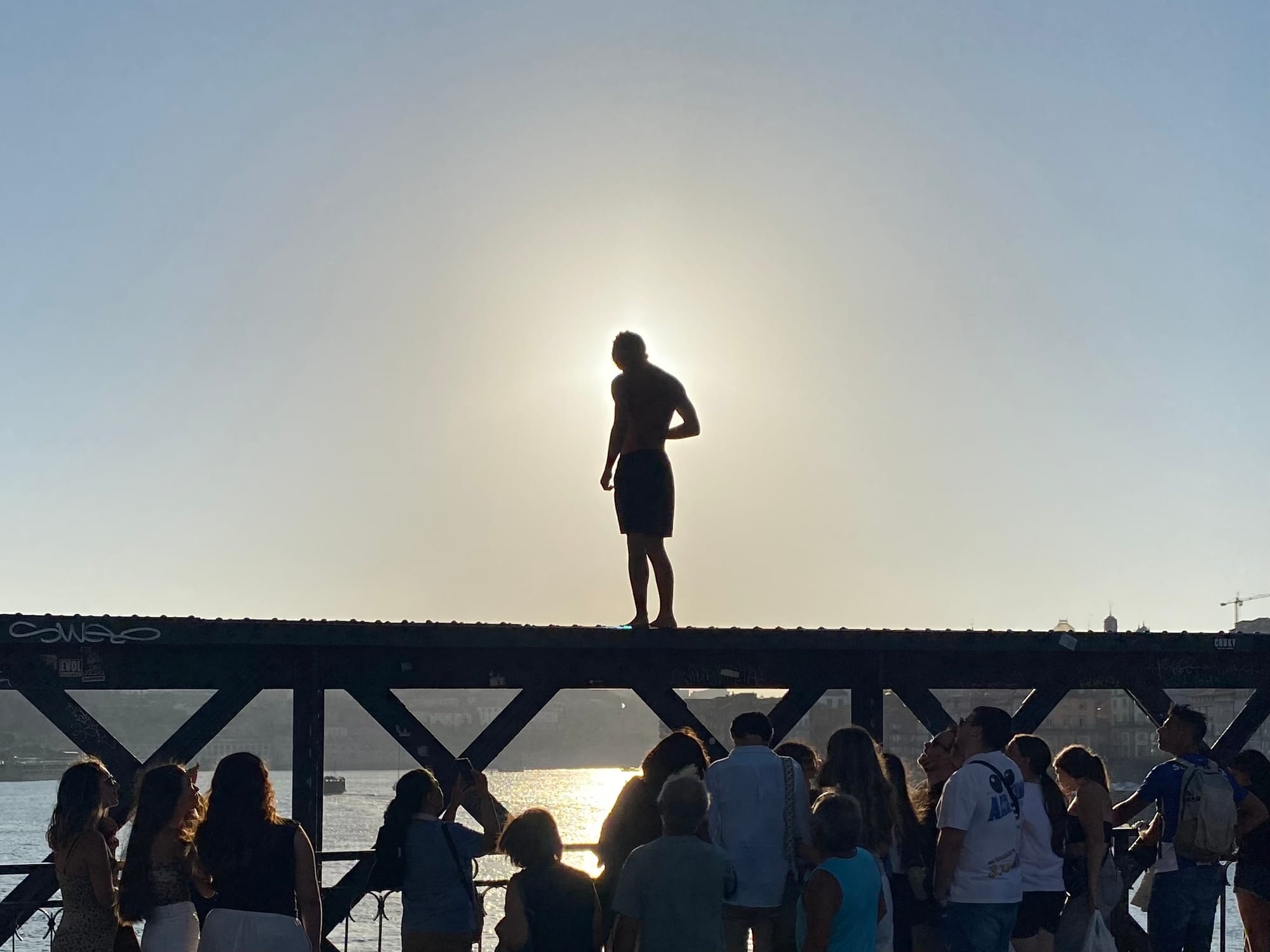 站在上層的橋上看著夕陽與海灣,可以感受到內心的平靜、自然與人文恰到好處的交匯,我們那時候太興奮在拍照,殊不知剛好有輕軌駛過,還好路人很熱心的 (或覺得我們很白目的) 趕快把我們拉到安全的地方,不然我們的朝聖之路在還沒開始之前就要先結束了,感謝當時好心的路人 🙏